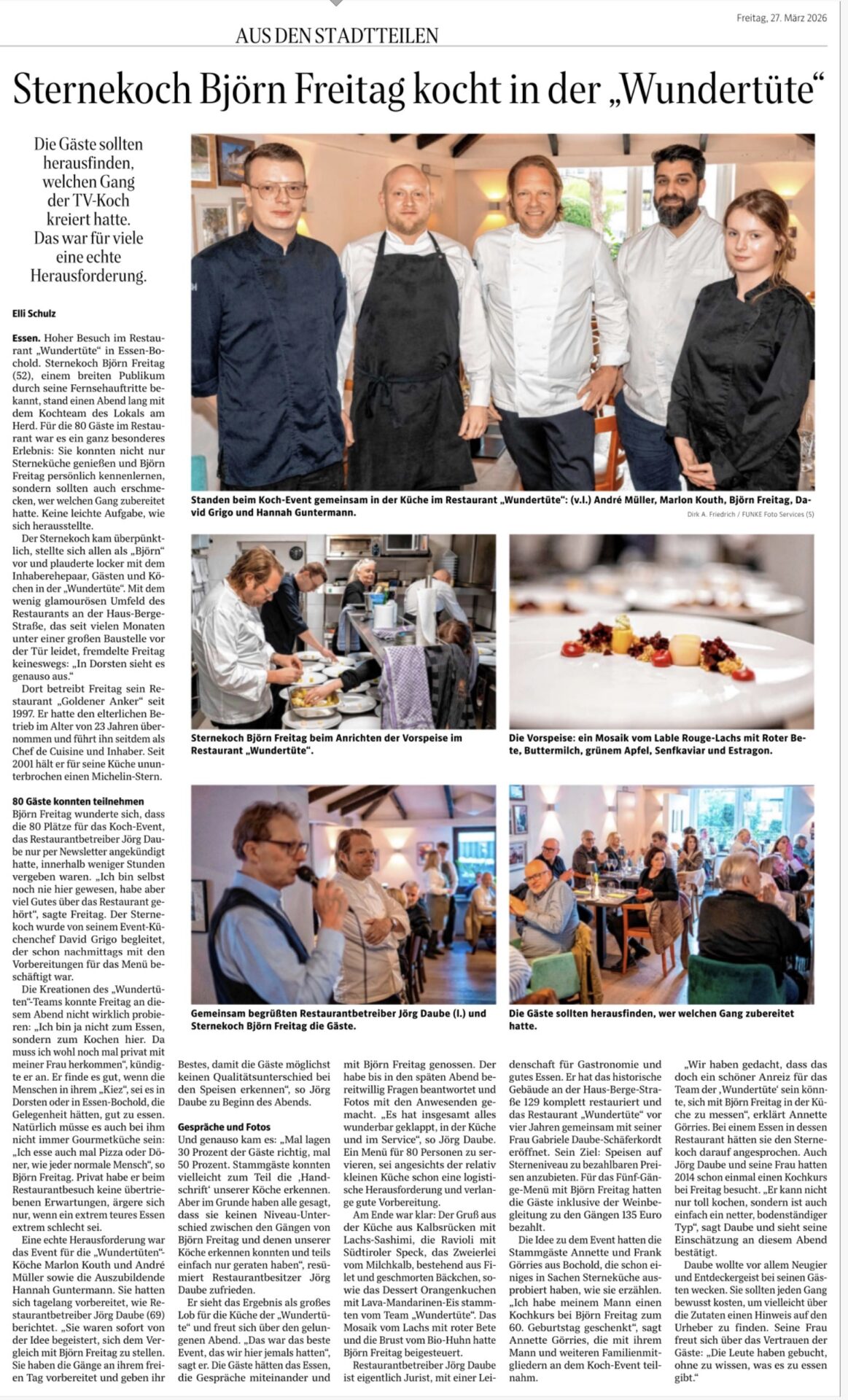 Björn Freitag, Sternekoch aus Dorsten und vielen bekannt aus tollen Fernsehformaten beim WDR, war auf Vermittlung unserer Stammgäste Annette und Frank Börries am 25.03.2026 in der Wundertüte.
